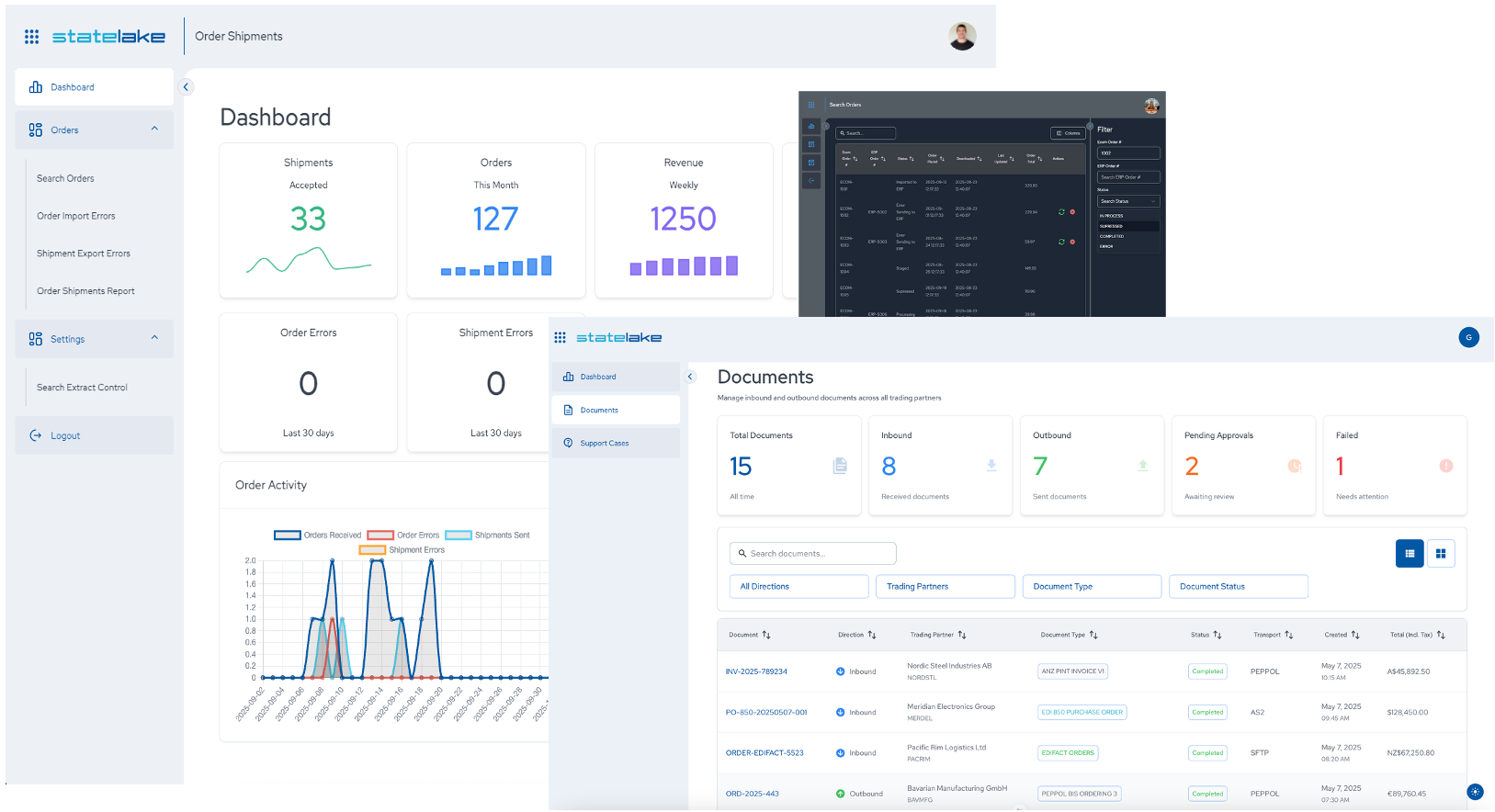 With the Statelake Platform you connect systems and partners, then see the business workflows they drive. Workspace gives live status, guided resolution, and audit-ready proof for Operations and Finance.